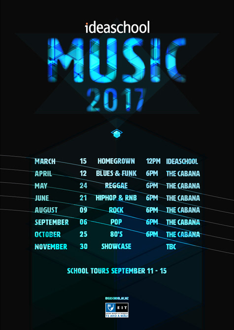 Full set of gig posters for ideaschool Contemporary Music performances 2017